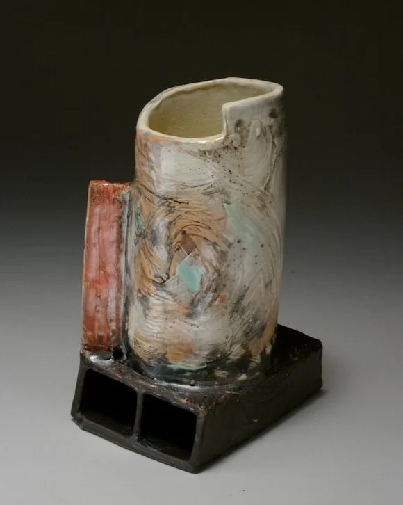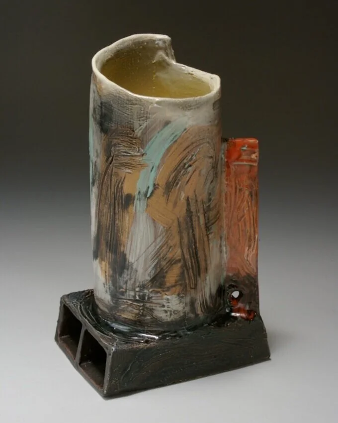 Extruded Vase on Pedestal #5. 6” x 5.5” x 11”. 2007. Terra cotta and glaze.