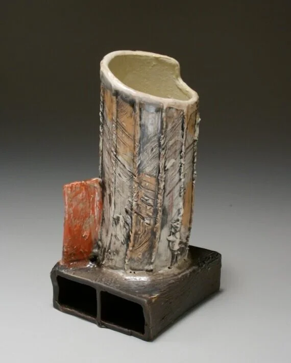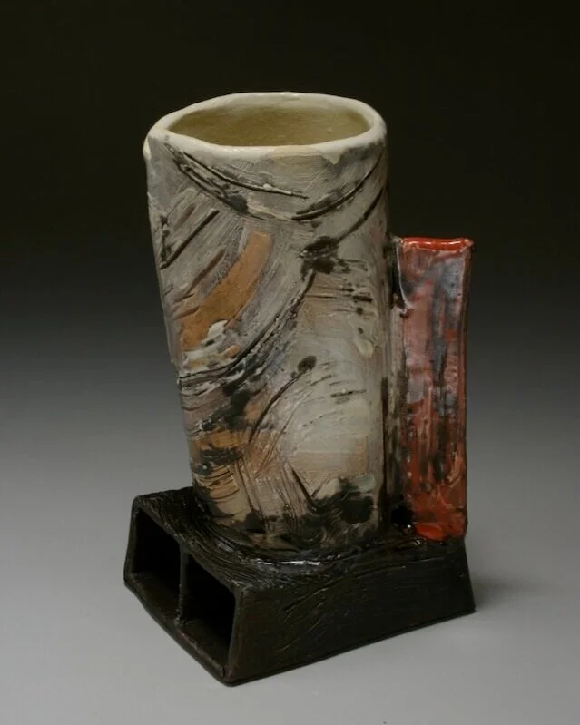 Extruded Vase on Pedestal #8. 4.75” x 5” x 8”. 2007. Terra cotta and glaze.