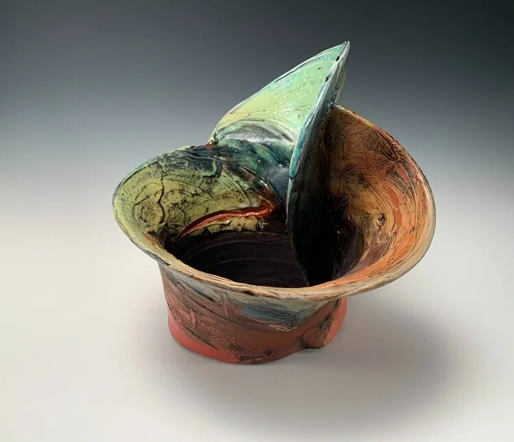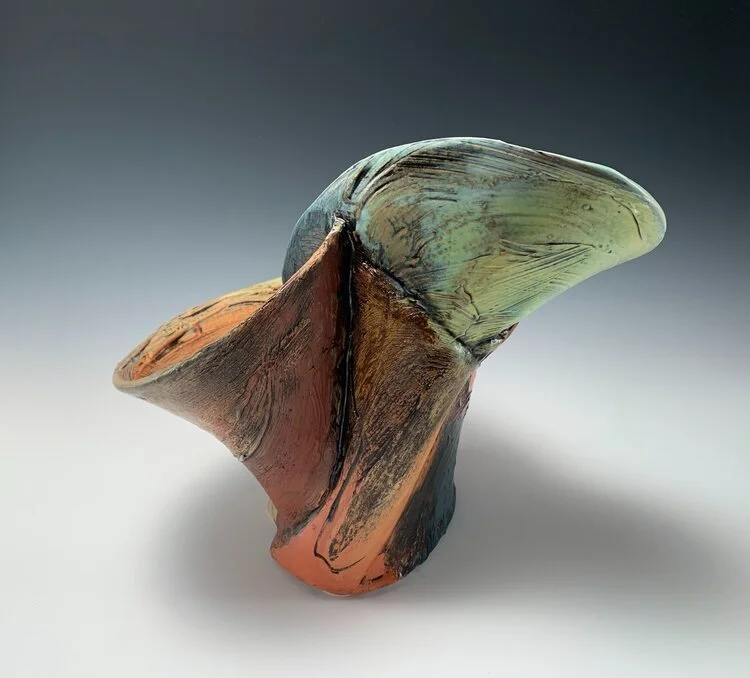 Beach Twist, 14” x 10.5” x 8.25”. Terra cotta and Glaze.